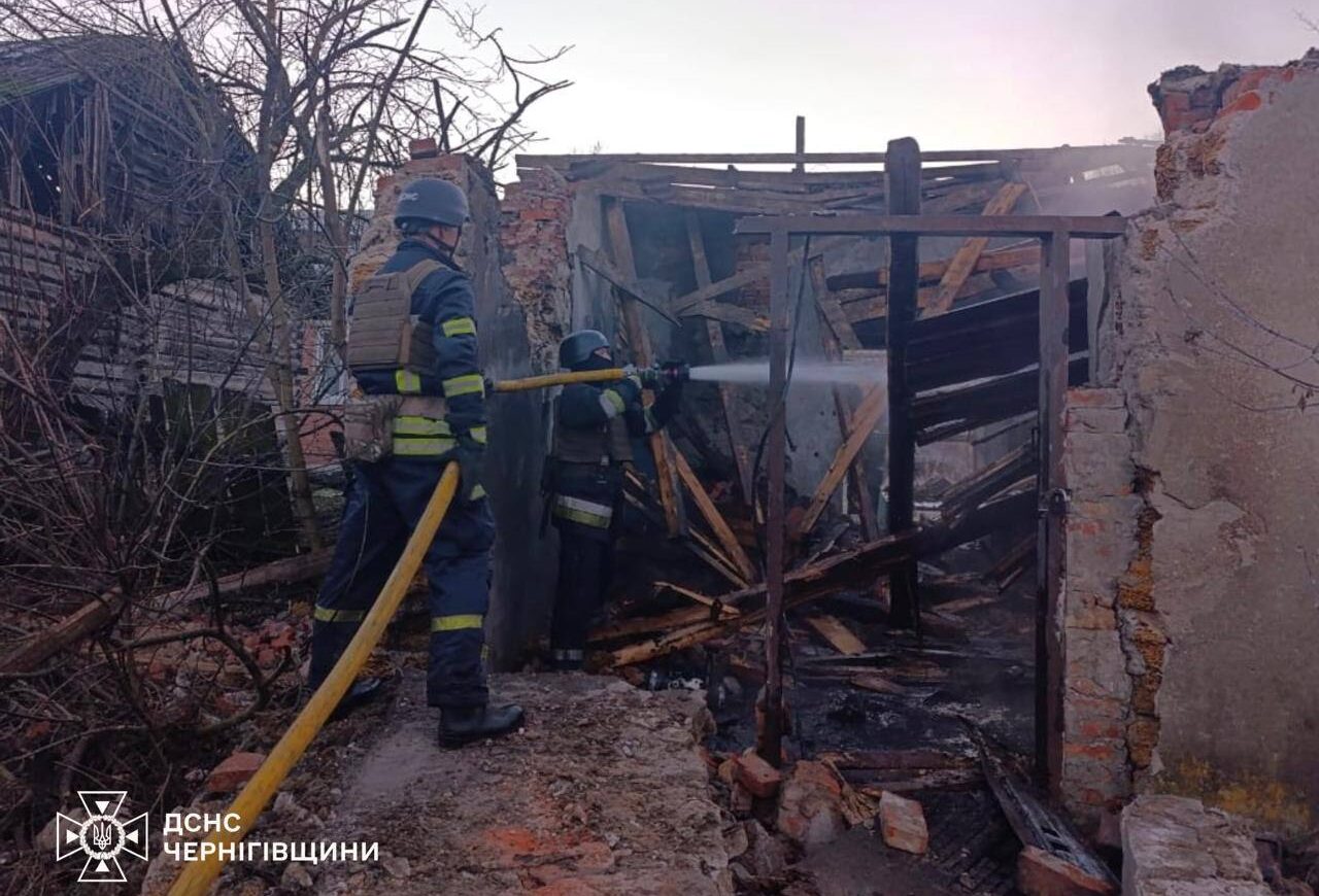 Також на Ніжинщині пошкоджена транспортна інфраструктура. Крім того, ворожий безпілотник знову вдарив і по Семенівці — пошкоджена адмінбудівля. А у Новгород-Сіверському районі на Коропщині через влучання ворожого БпЛА загорівся нежитловий будинок. Також вибиті вікна в будинку культури.