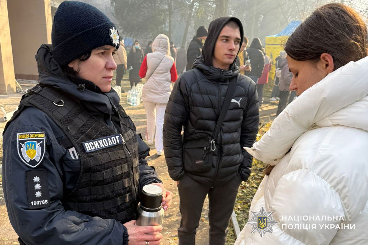 На місцях влучань працюють слідчо-оперативні групи поліції, патрульні, криміналісти, вибухотехніки, співробітники ДСНС, медики. Психологи Нацполіції та інших профільних служб надають постраждалим психологічну допомогу та підтримку.