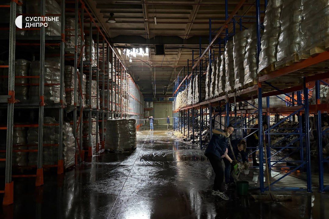 Фото: «Суспільне Дніпро»Унаслідок російських атак у Дніпрі зайнялася пожежа на складі харчової продукції Всесвітньої продовольчої програми ООН.