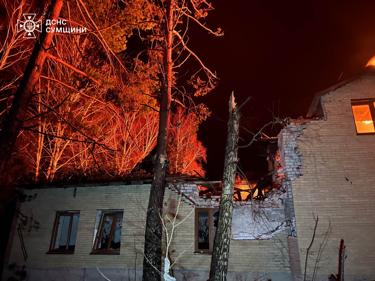 В іншому населеному пункті Шосткинського району через атаку російського БпЛА загорілася нежитлова будівля. Рятувальники ліквідували пожежу. А у Сумах співробітники ДСНС обстежили місце влучання. Пошкодження зафіксували як у житловому секторі, так і в нежитловій будівлі.