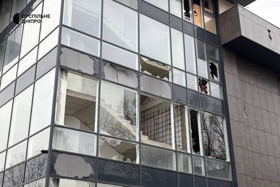 Вигляд будівель поблизу місця влучання російської ракети у Дніпрі 1 грудня / Фото: «Суспільне Дніпро»Вранці 1 грудня російські війська здійснили ракетний удар по Дніпру, внаслідок чого загинули троє людей.