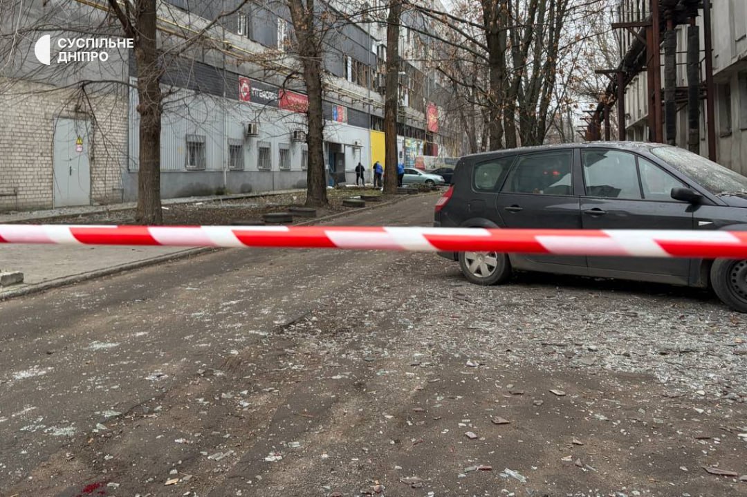 Вигляд будівель поблизу місця влучання російської ракети у Дніпрі 1 грудня / Фото: «Суспільне Дніпро»