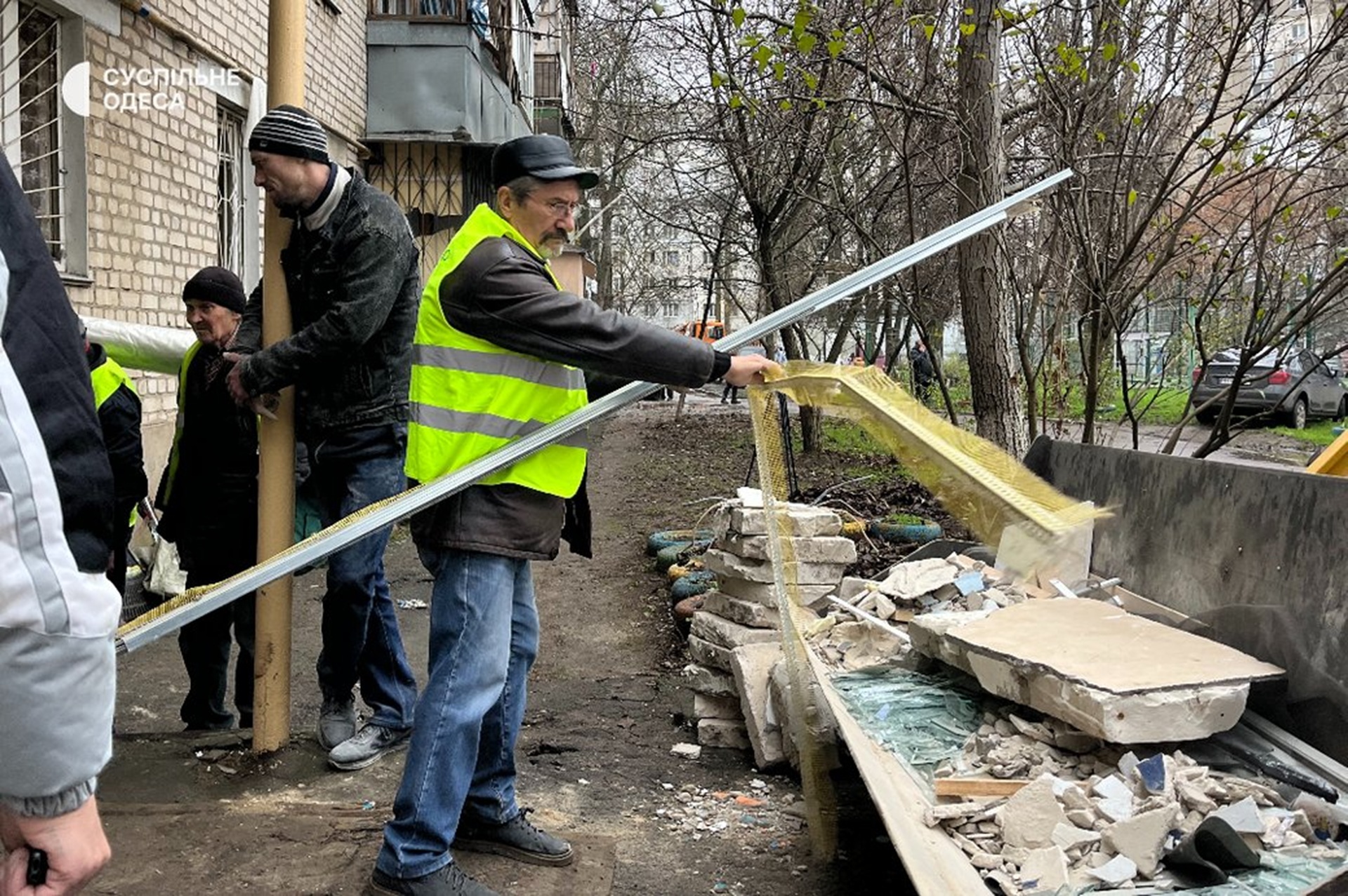 Комунальник ліквідовує наслідки в Одесі після російського удару 4 грудня / Фото: Суспільне Одеса