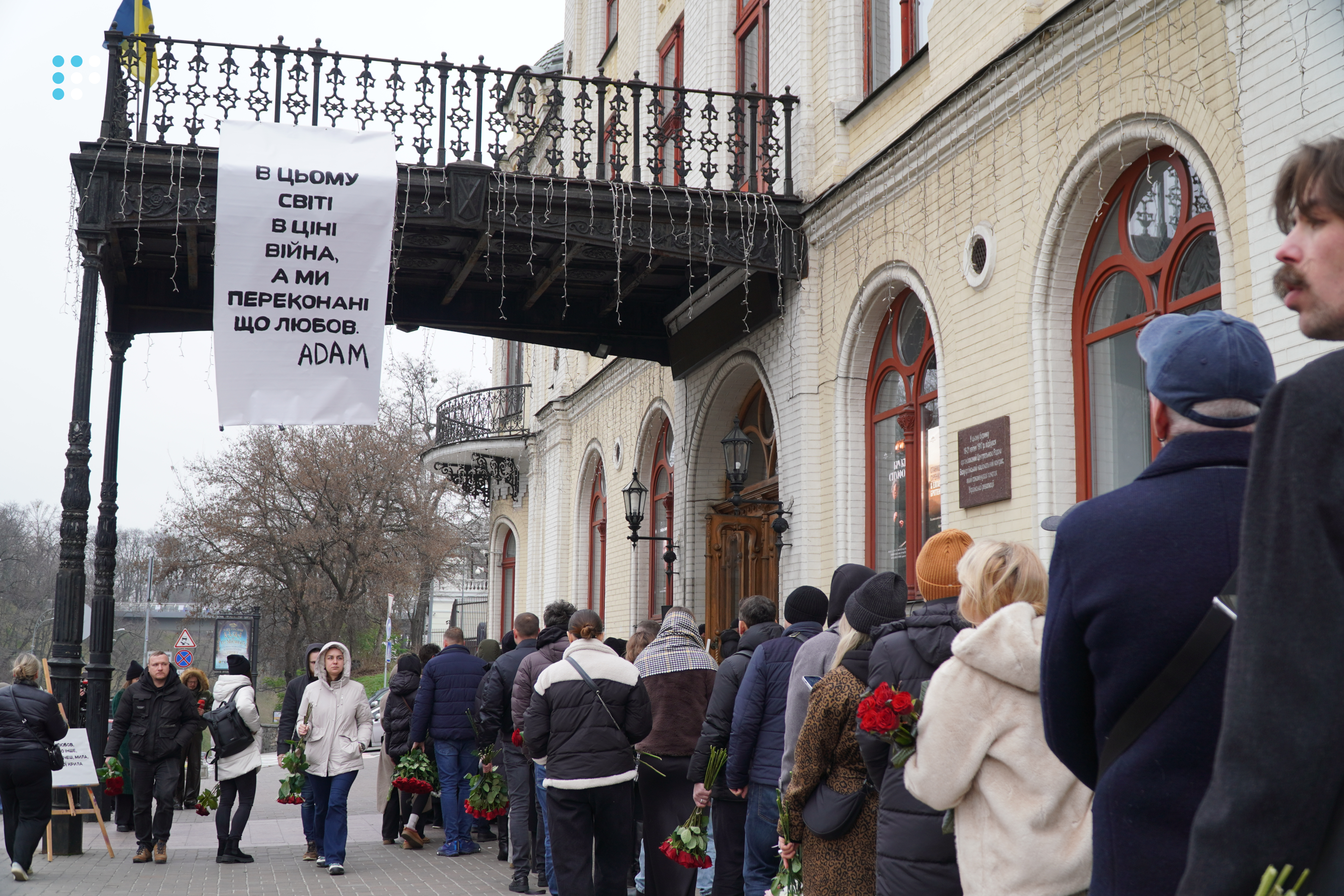 Як повідомляють кореспондентки, у Національній філармонії України попрощатися з лідером гурту Adam прийшли друзі, близькі, слухачі, музиканти. Приносили лише живі квіти. На вулиці біля будівлі лунали композиції виконавця.
