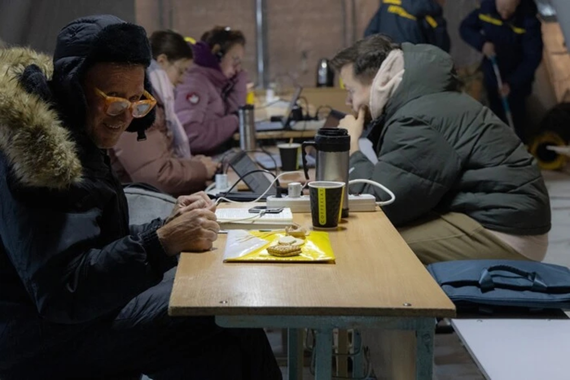 Люди в «пункті незламності» в Києві / Фото: ДСНС