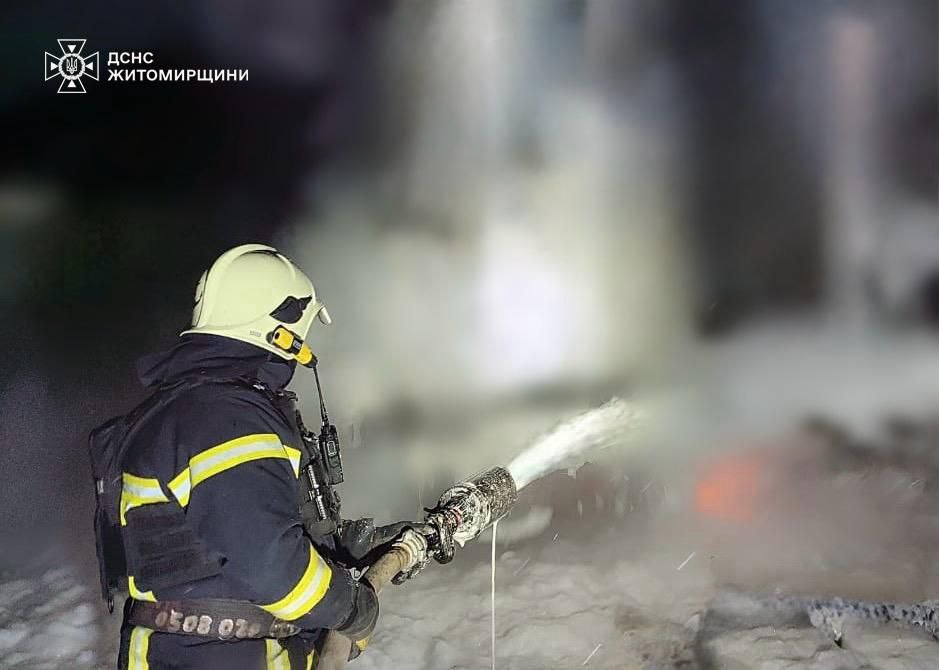 У ніч на 15 січня росіяни обстріляли Житомирщину: виникла пожежа на об’єкті критичної інфраструктури.
