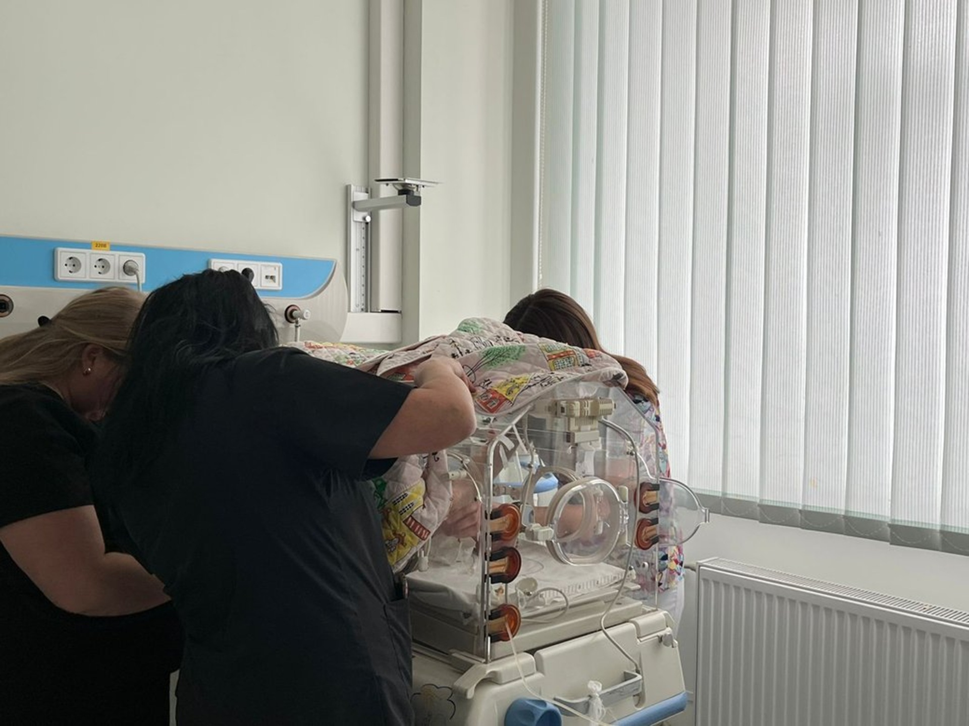 Медична палата з інкубатором для немовляти з медиками, які оглядають дитину / Фото: Суспільне Тернопіль