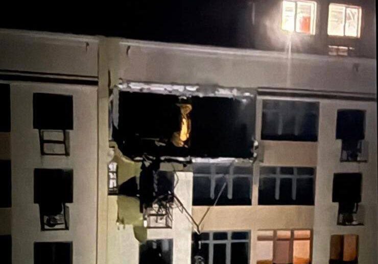 В Одеському районі безпілотник влучив у багатоповерховий житловий будинок. Пошкоджені дві квартири, фасад будівлі, скління та приватний транспорт, припаркований поруч.