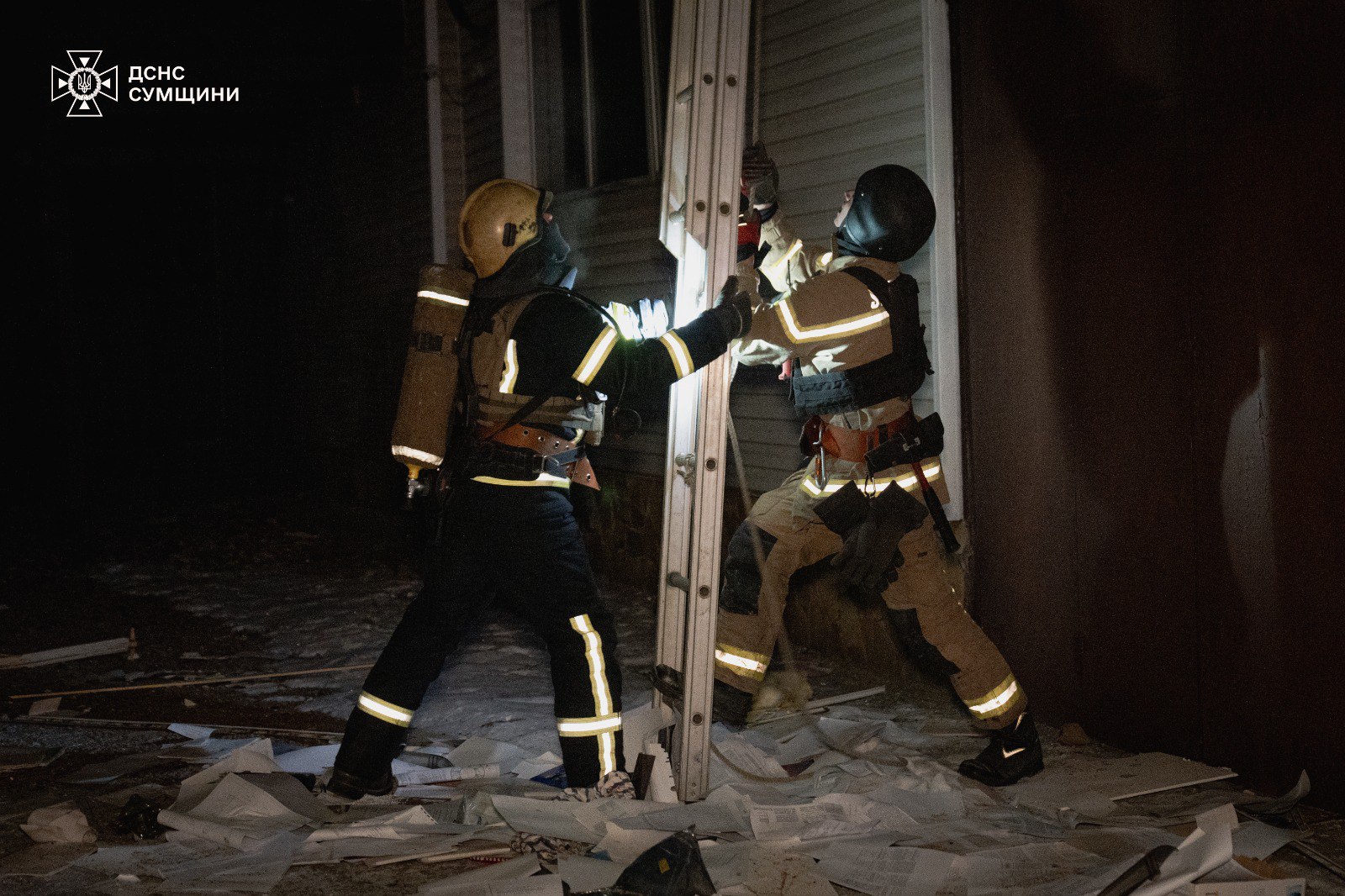 У Сумах пожежники врятували жінку після нічного удару російських військ по місту.