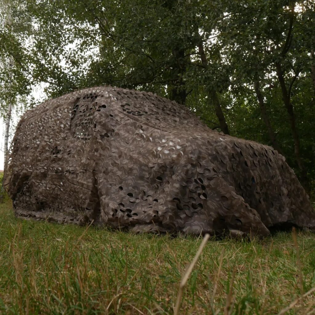 - Універсальність застосування. Якісна маскувальна сітка придатна для різних задач: маскування бойових позицій, бронетехніки, артилерійських установок, польових складів, командних пунктів тощо. Її можна використовувати і в цивільних умовах — для мисливських скрадків, кемпінгу або страйкболу, коли потрібно сховати табір або засідку від чужого спостереження. Одне полотно часто виконує одразу кілька функцій: не тільки маскує, а й створює тінь, маскуючи від сонця або маскує спалахи світла вночі.