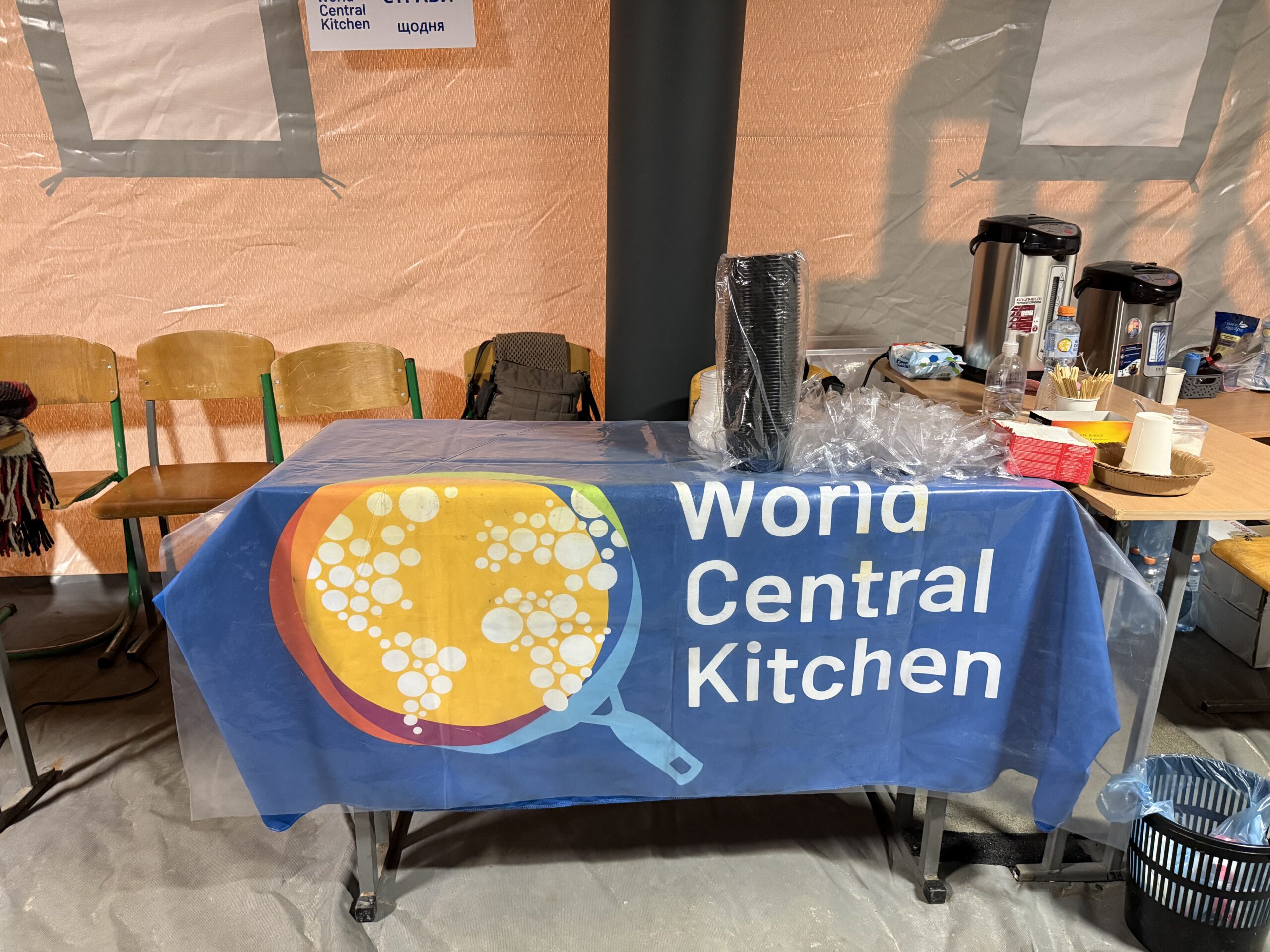 Якраз щодо харчування, як розповіла співробітниця поліції, вдень організація World Central Kitchen привозить у цей пункт обігріву гарячу їжу. Її роздають усім охочим безоплатно. Багато людей приходять у це місце саме за гарячими стравами.