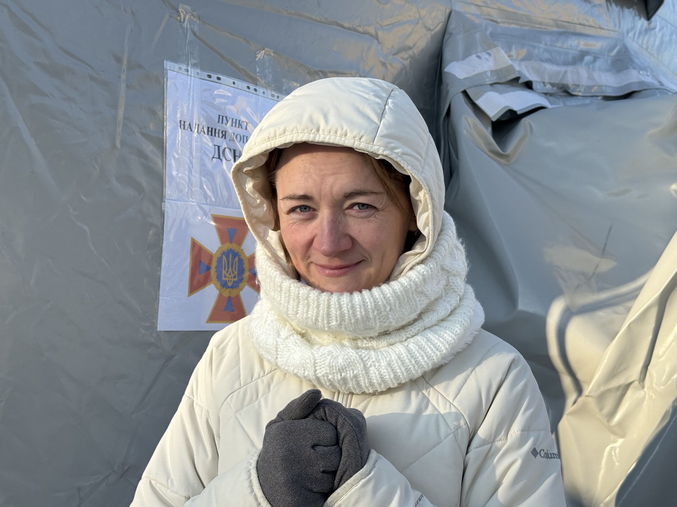 До слова, у пункті дуже тепло. Зайшовши, верхній одяг хочеться навіть зняти, оскільки швидко стає спекотно. Тут цілодобово чергують співробітники ДСНС та правоохоронці. Часто вони допомагають літнім людям заходити всередину, оскільки вхід до намету високий.