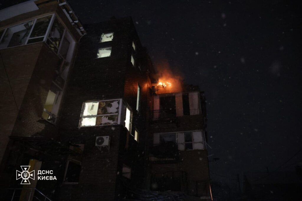 Російська атака на Київ у ніч на 5 лютого/Фото:ДСНСРосійські війська атакували Київ у ніч на 5 лютого. Одна людина постраждала.