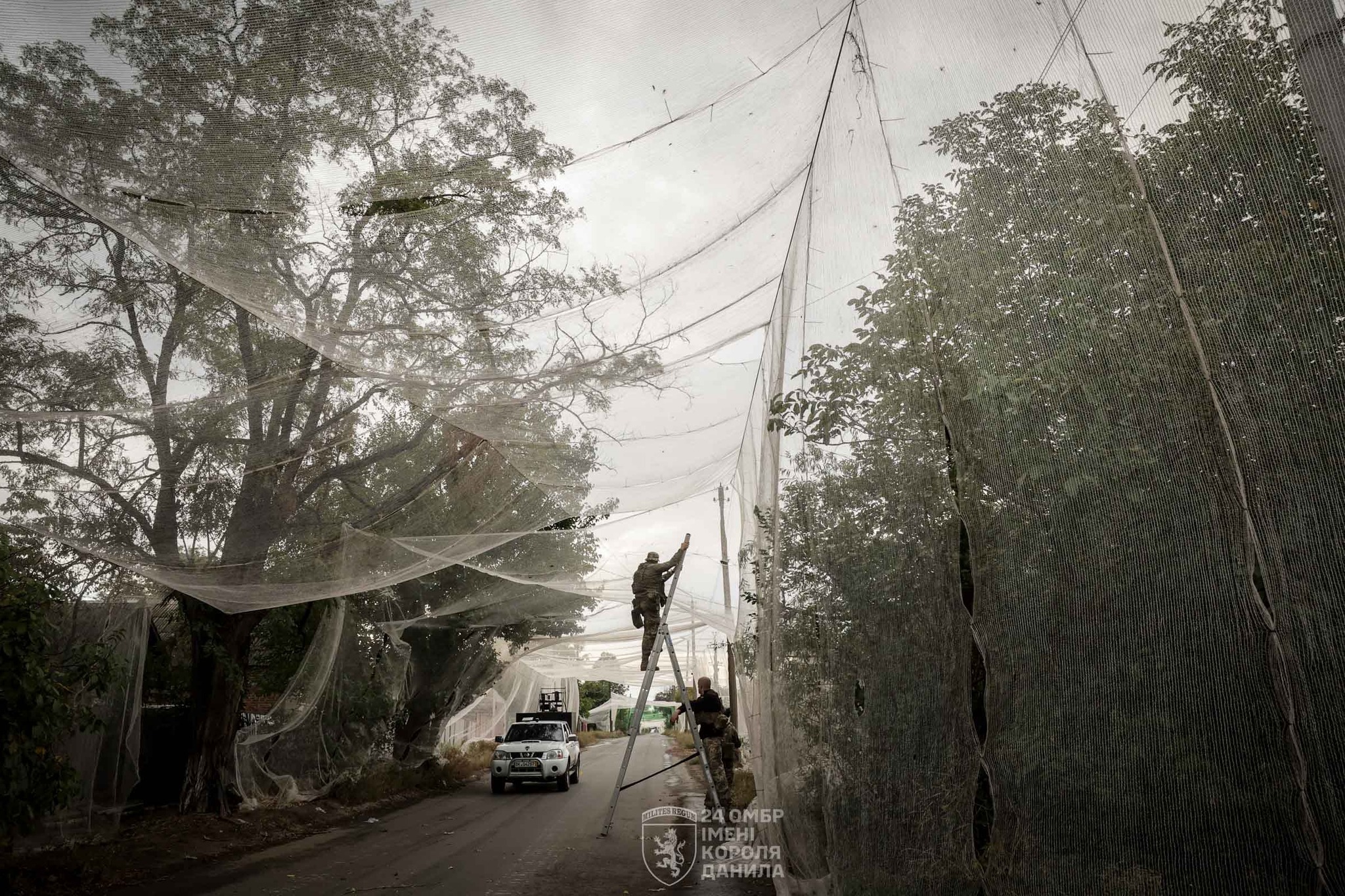 Військові встановлюють антидронові сітки в Костянтинівці Донецької області, жовтень 2025 / Фото: 24 окрема механізована бригада імені Данила Галицького