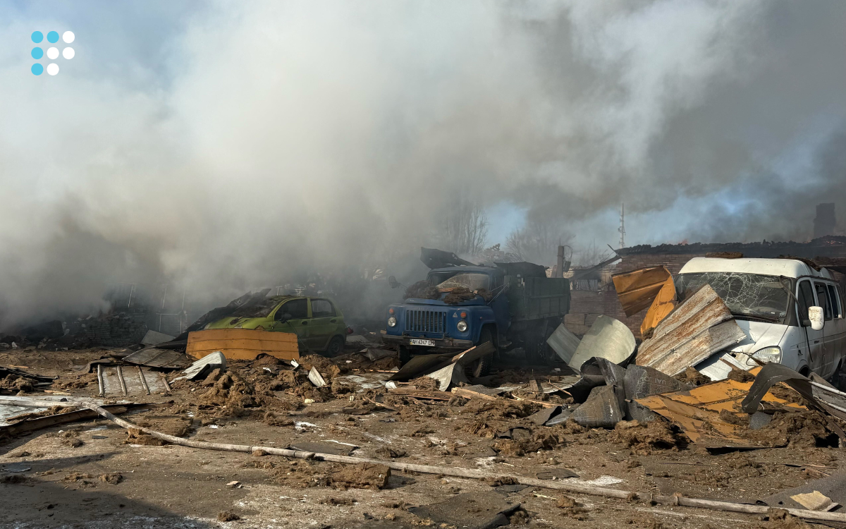 За словами журналістки, там немає жодного військового об’єкта. Постраждали автомийка, СТО, склад секонд-хенду. «Все це зараз горить, палає», — сказала журналістка.
