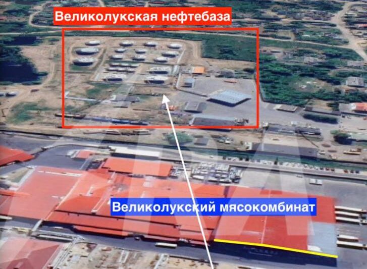 Із посиланням на слова місцевих мешканців, ідеться про нафтобазу в місті Великі Луки.