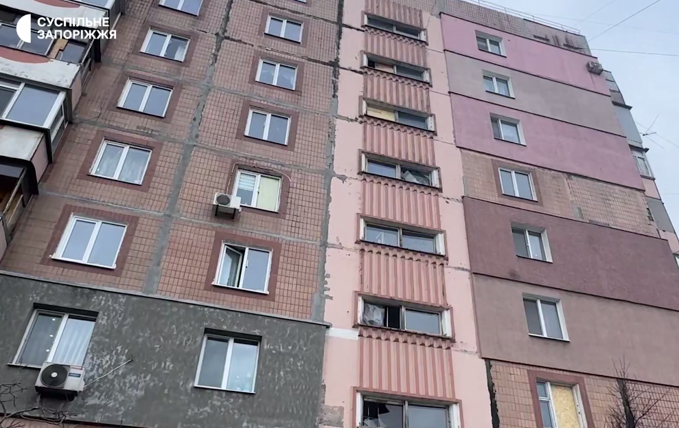 Постраждалий внаслідок російського обстрілу будинок у Запоріжжі/20 лютого 2026/Скриншот відео Суспільне.Запоріжжя