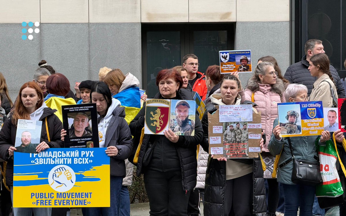 У Брюсселі родини українських військових вийшли до посольства Росії з портретами полонених і зниклих безвісти