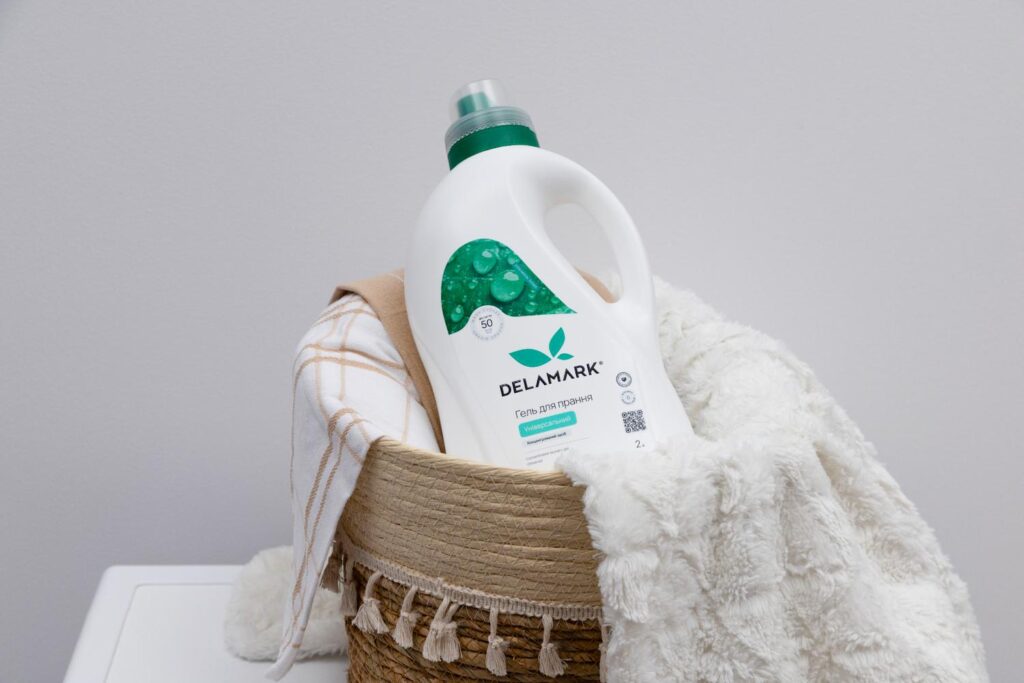 Наприклад, гель для прання DeLaMark Universal — м’який безфосфатний засіб, який швидко розчиняється за температури 30-40 °C і при цьому дбайливо ставиться до тканини.