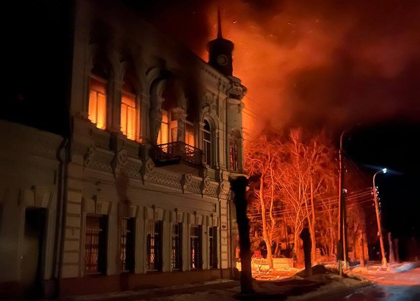 У ніч на 13 березня російські війська атакували ударними безпілотниками історичну будівлю в центрі Новгорода-Сіверського на Чернігівщині.