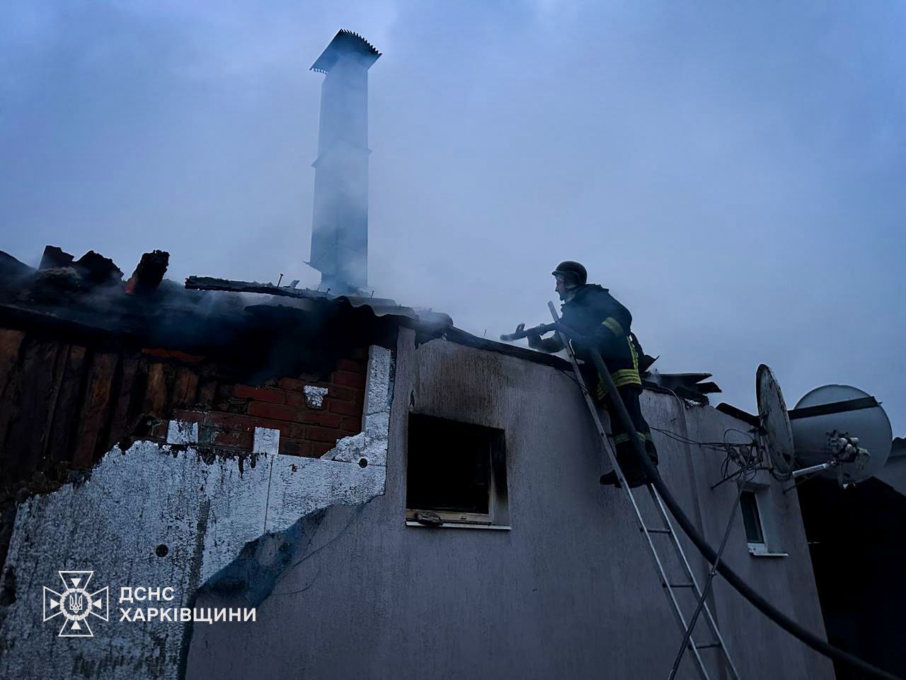 Так, уночі російські війська завдали удару безпілотником по житловому сектору селища Золочів Богодухівського району. Внаслідок влучання виникла пожежа — горіли конструктивні елементи двох зруйнованих приватних житлових будинків на площі 180 кв. м.
