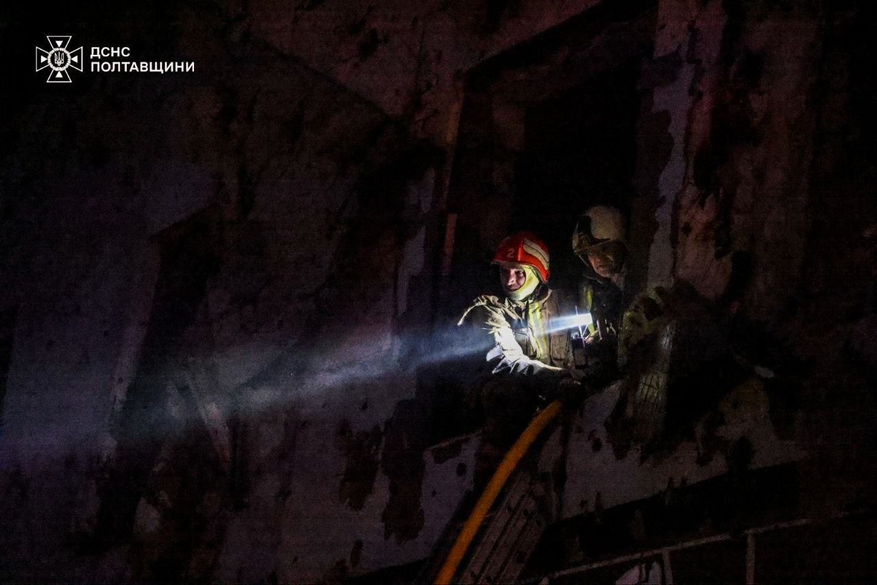 Так, у місті Полтава та Полтавському районі внаслідок ворожих ударів зафіксовані пошкодження житлових будинків, готелю та виробничих об’єктів. Виникли пожежі, які ліквідували вогнеборці.