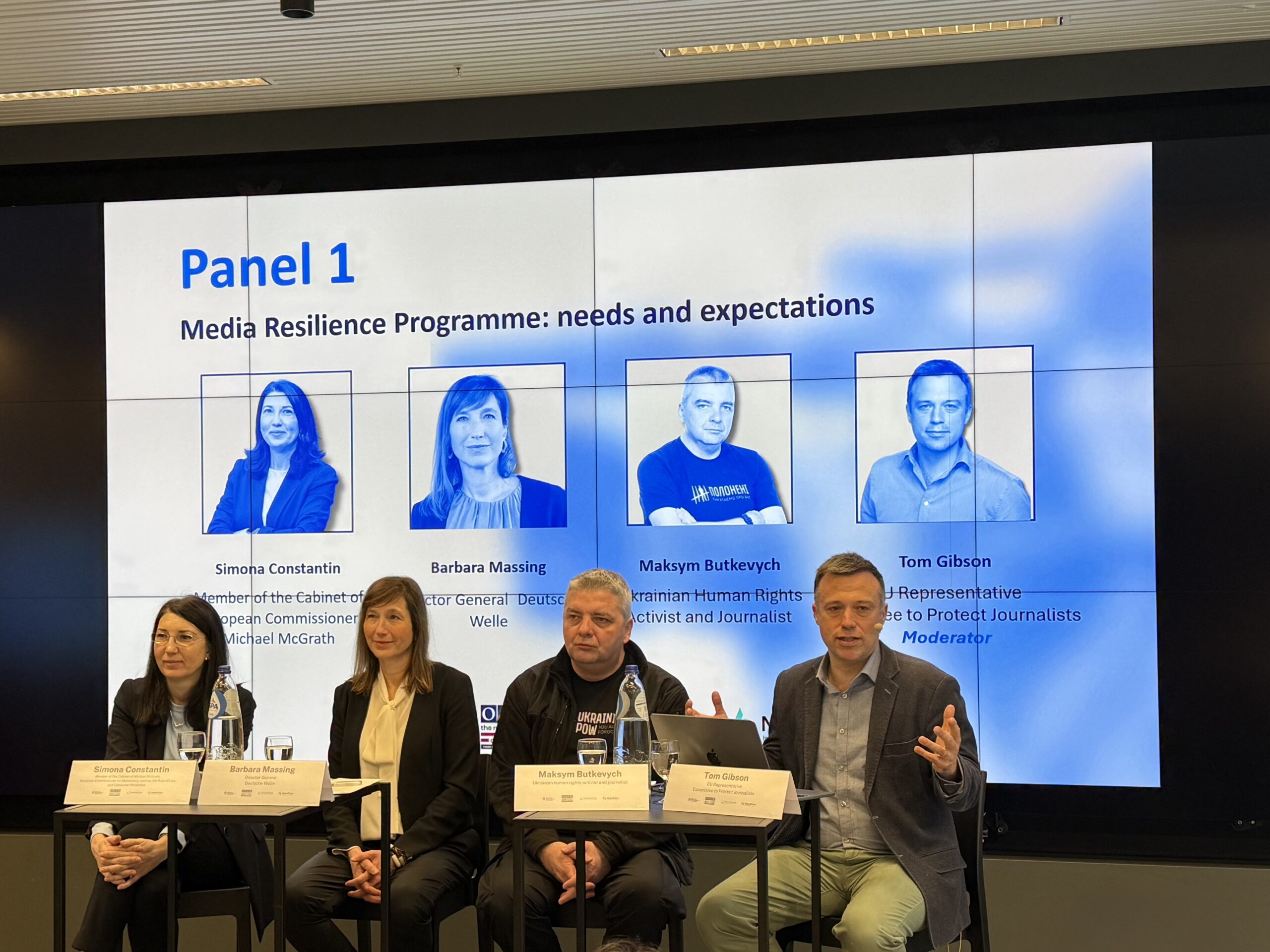 Максим Буткевич бере участь у панельній дискусії на конфернеції щодо підтримки ЗМІ в рамках ініціативи «Європейський щит демократії» у Брюсселі / Фото: Громадське радіо