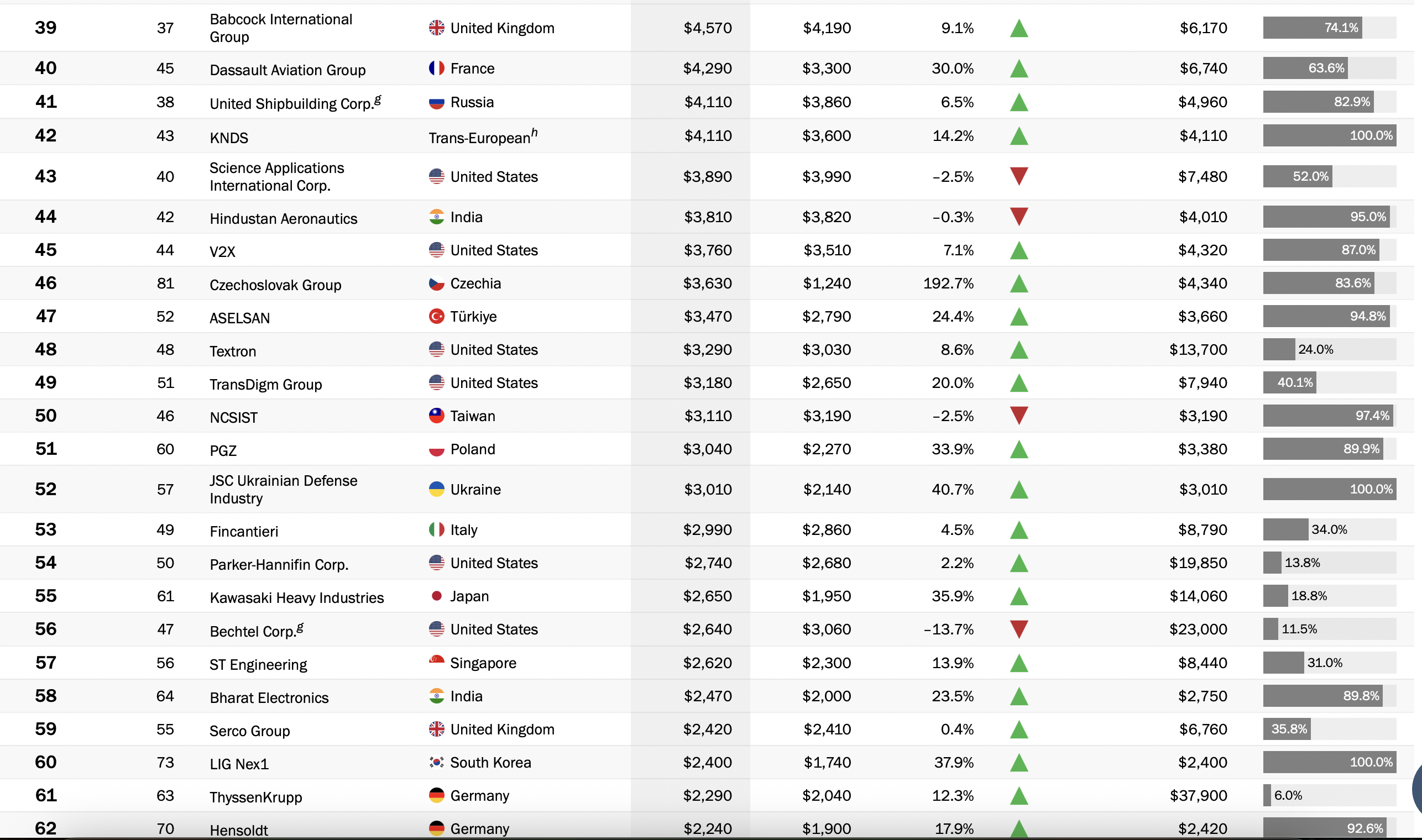 Нагадаємо, 1 грудня Стокгольмський міжнародний інститут дослідження проблем миру (SIPRI) оприлюднив рейтинг 100 найкращих компаній світу з виробництва зброї та надання військових послуг за 2024 рік.
