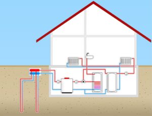 - Теплові насоси великої потужності можуть використовуватися для забезпечення всієї багатоповерхівки. Найкраще їх встановлювати ще під час будівництва будинку, і такі проєкти зараз реалізують. Тут використовують геотермальний тепловий насос, який бере енергію від ґрунту. Це може у кілька разів зменшити вартість опалення та гарячої води для споживачів.