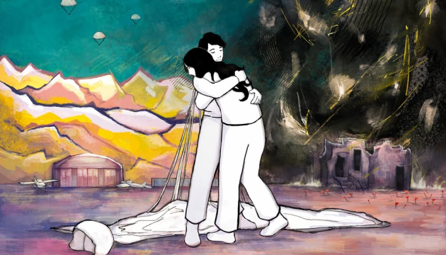 І в той же момент цей фільм подорожує в часі, бо онука, яка переживає певномасштабне вторгнення, намагається дозвонитися до своєї бабусі. І вона досягає молодої версії цієї бабусі, яка живе в Таджикистані. Вони розмовляють про ідентичність, про війни, які не кінчаються, і також про багато інших важливих тем.