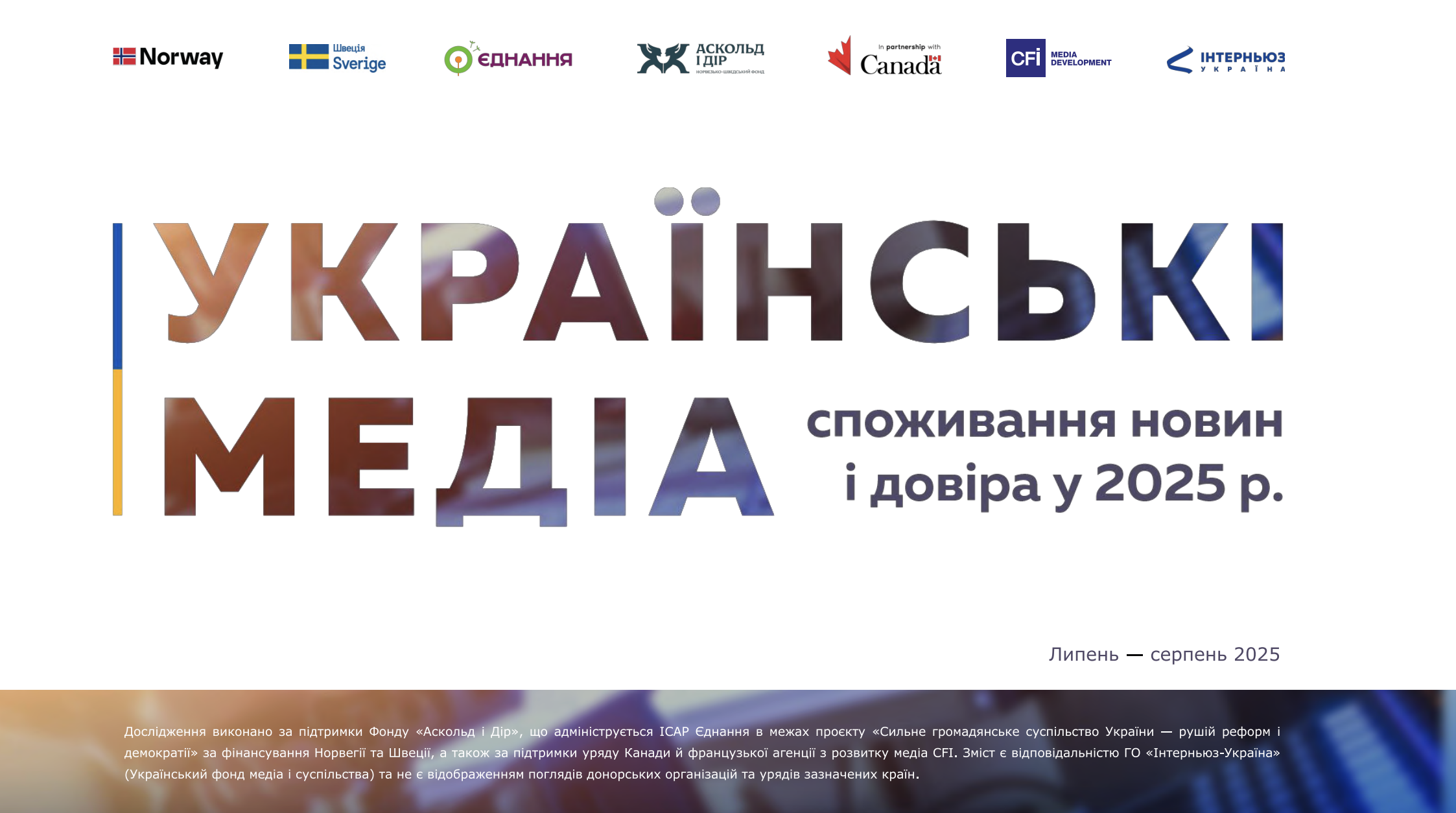 Дмитро Зінчук: Наше цьогорічне дослідження було продовженням масштабного дослідження, яке вже протягом більше 10 років впроваджував Internews Network за підтримки USAID в Україні. Ми цього року з командою не хотіли, щоб це дослідження зникло, тому що воно давало цінні дані як для представників медіасектору, так і для представників влади та населення, щодо розуміння того, як взагалі українці споживають медіа, яким каналам комунікації вони довіряють. І от, власне, дякуючи підтримці ІСАР Єднання, міжнародних донорів, Норвегії, Швеції, ми провели от таке комплексне дослідження цього року і продовжили це робити, дивитися в динаміці, які ж зміни ми отримаємо.