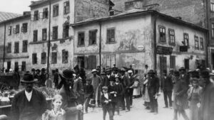 Загалом політична ситуація для євреїв у міжвоєнний період у Польщі була складною. У них були сильні обмеження, починаючи з другої половини 30-х років, наприклад, встановлена кількість євреїв, яких могли приймати на навчання. З’являється «лавкове гетто», коли націоналістичні групи змушували євреїв стояти під час занять в університеті. Є багато бойкоту й агресії щодо єврейських магазинів. Є рухи, які ми як українці позитивно трактуємо, «свій до свого по своє», але вони були спрямовані проти євреїв. Це середовище неприязне до євреїв, в якому вони відчувають себе чужими, попри те, що культурно вони дуже вписані у цю Другу Річ Посполиту.