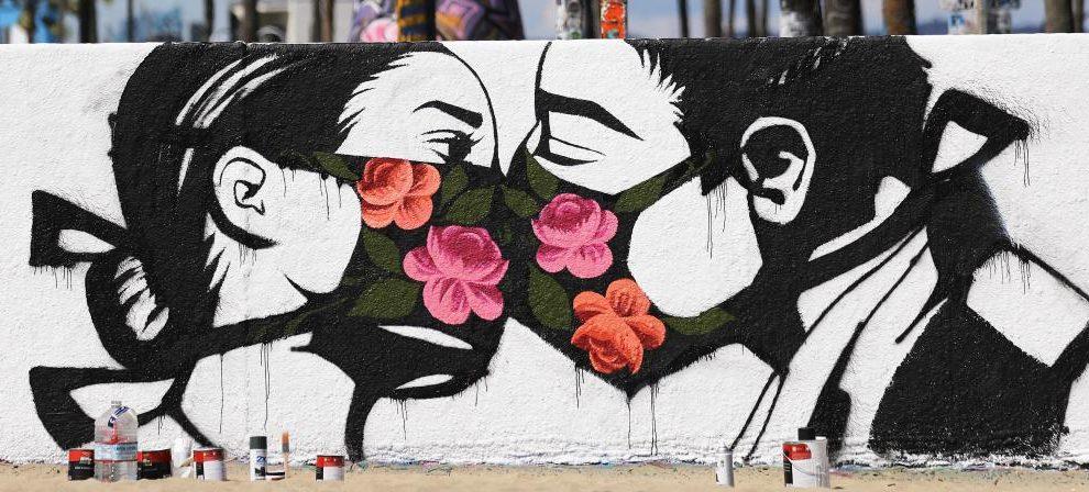 Графіті художника Pony Wave у Каліфорнії/Фото: MARIO TAMA / GETTY IMAGES NORTH AMERICAПандемія коронавірусу вже вплинула майже на всі сфери нашого життя. Не оминуло це і мистецтво. Люди з усього світу створюють малюнки, музику, графіку — усе, аби впоратись із карантином, з переживаннями щодо майбутнього або висловити вдячність людям, які ризикують заради здоров’я та добробуту інших.