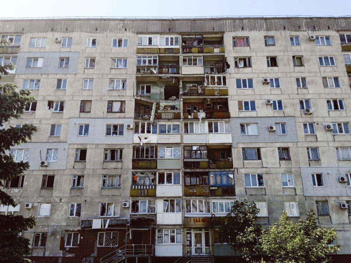 Пошкоджена обстрілами багатоповерхівка в Лисичанську, червень 2022. Фото: Вікторія Рощина для Громадського радіоЛисичанськ на Луганщині залишається однією з найгарячіших точок в Україні. Місто обстрілюють вдень і вночі, гинуть мирні мешканці. Волонтерам все важче пробиратися до міста, оскільки траси обстрілюють. Через відмову евакуюватися в місті лишається понад десять тисяч людей і лише 15 медичних працівників та працівниць, які рятують життя інших під обстрілами. Нещодавно окупанти влучили снарядом у гуманітарний центр, де зберігалися медикаменти. Все згоріло.