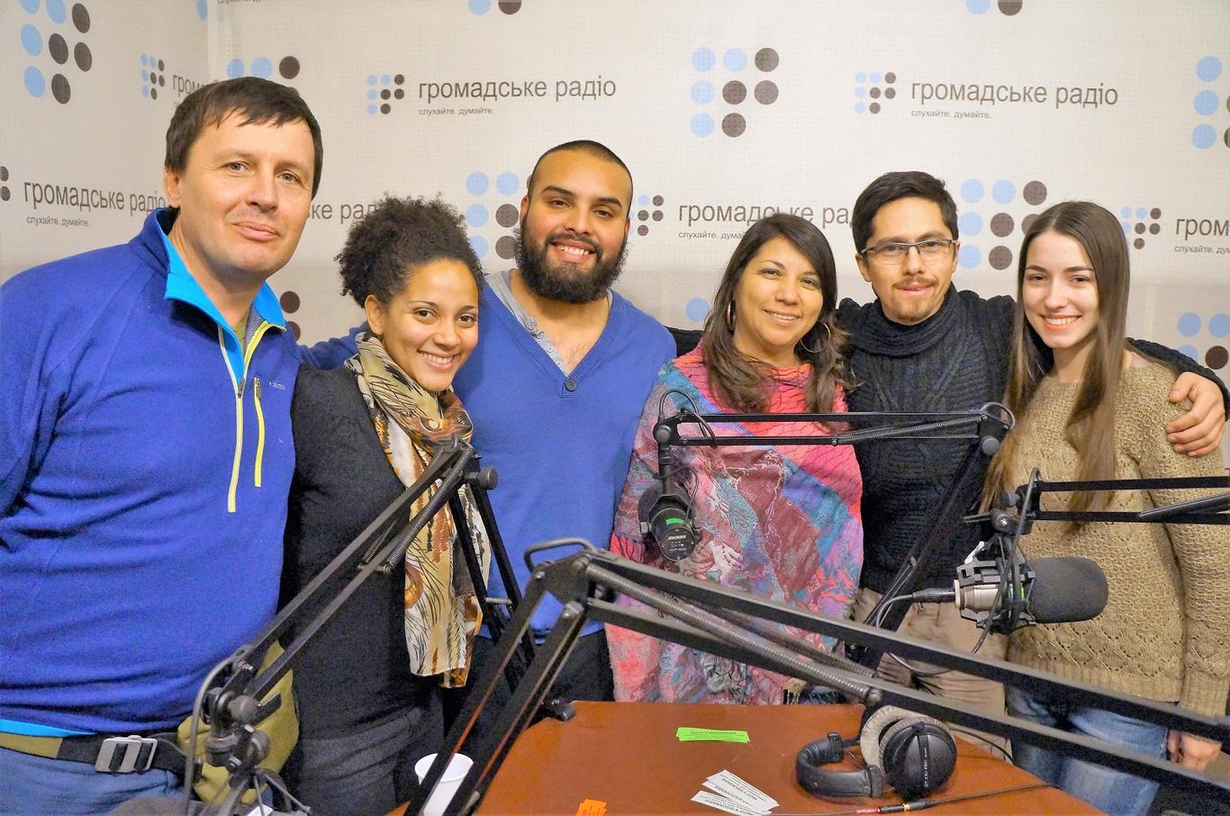 Своими впечатлениями о поездке на Донбасс делятся волонтеры с Южной Америки Алонсо Пинто, Кристин Эвелин, Сандра Брионес и Николас Морено. Также в студии «Громадського радио» представитель организации «Любовь не имеет границ» Игорь Прус.