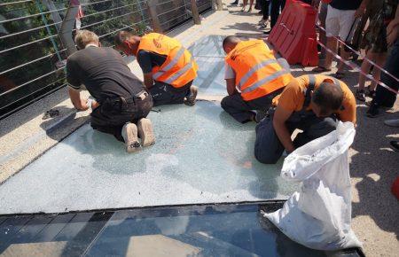 У Києві на новозбудованому мості замінюють побиті скляні панелі (фото, відео)